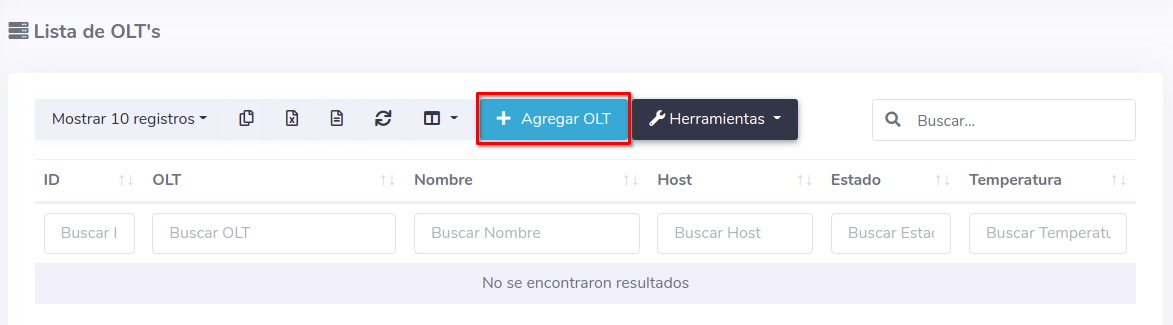 2 Seleccionar la opción Agregar OLT