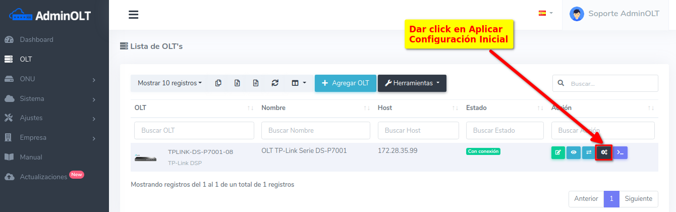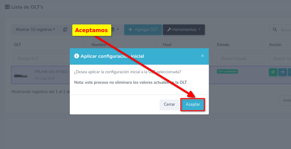 Después de aplicar las configuraciones iniciales, puede demorar entre 10-20 minutos en verse reflejados en su OLT.