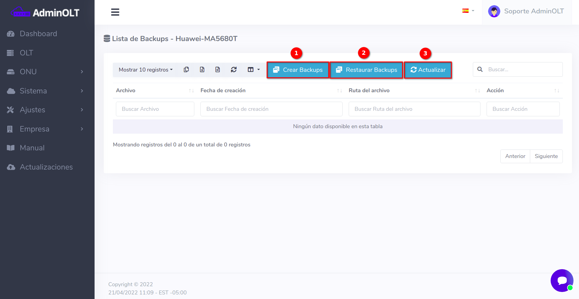 3 Verificar el respaldo en AdminOLT