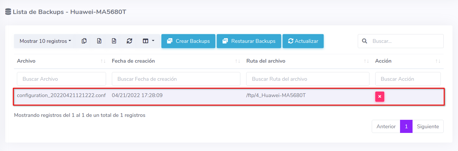 Eliminar respaldo desde AdminOLT