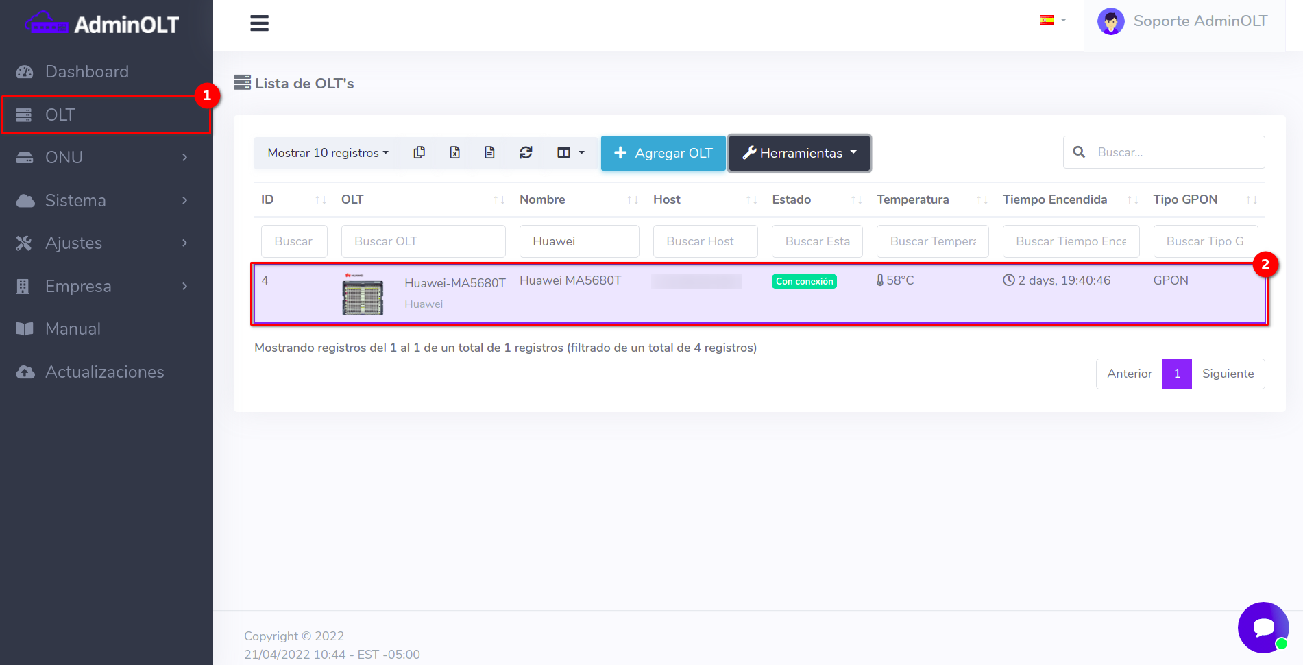 1 Seleccionar la OLT a trabajar