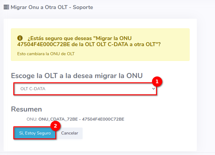 2Seleccionamos la OLT a la que queremos migrar la ONU