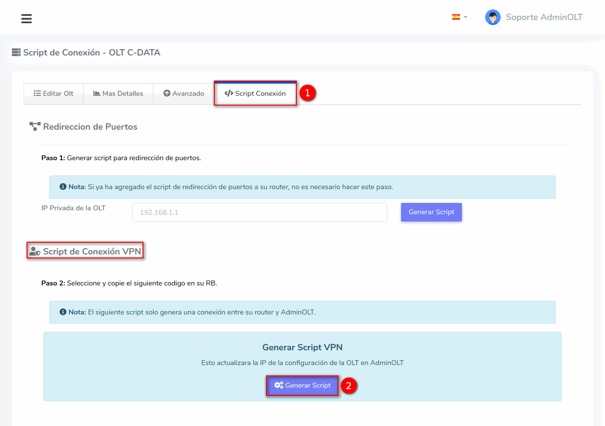 2 Nos dirigimos a la pestaña Script Conexión y en el apartado Script de Conexión VPN seleccionamos el botón con la leyenda Generar Script.