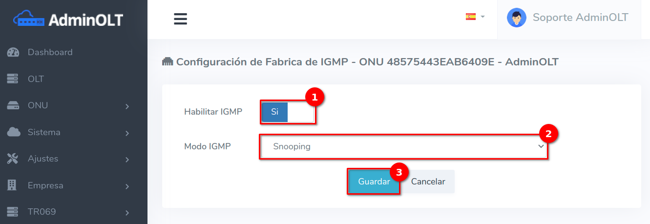 2Configuramos la información para guardar la información IGMP que la ONU