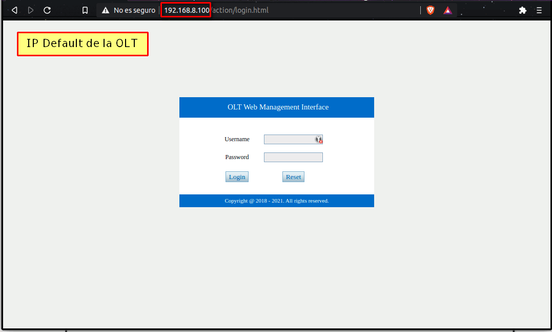 5 Entrar a la Ip de la OLT en algún navegador.