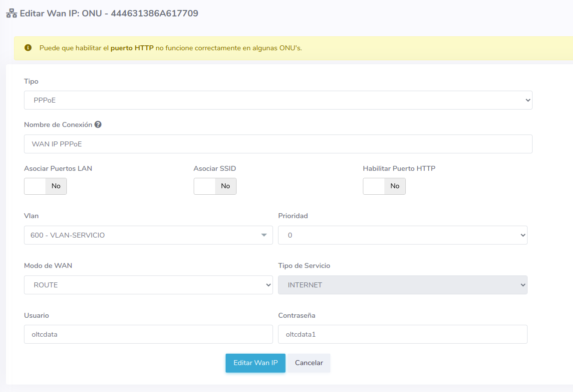 Pasos para crear Wan IP desde Onu's autorizadas.