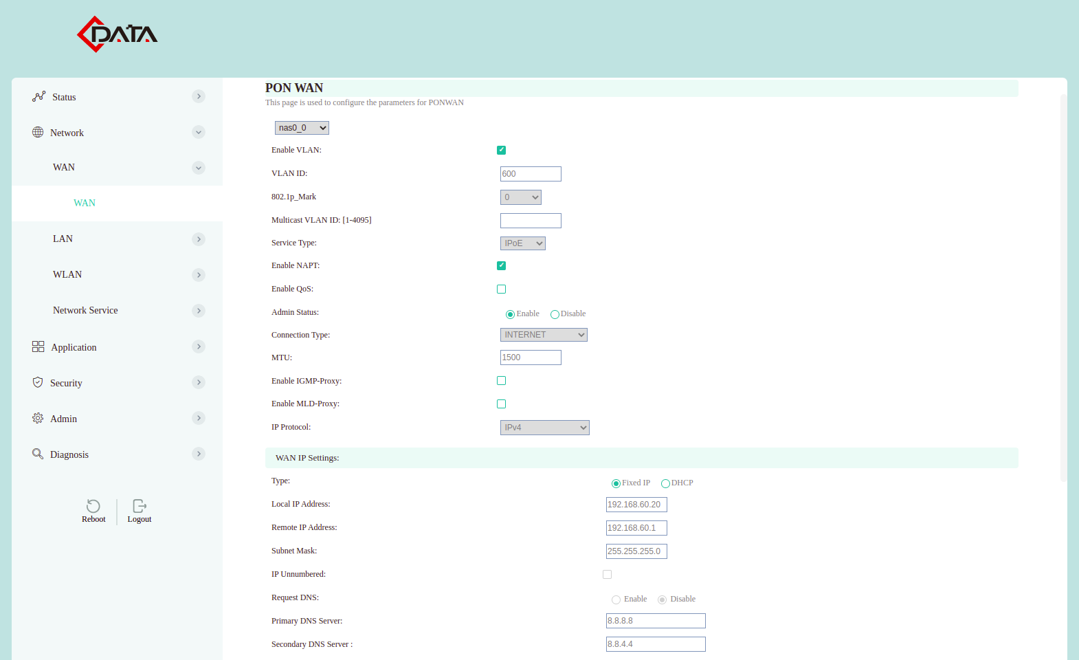 Al entrar a la interfaz de la ONU podremos ver que la configuración WAN se ha creado.