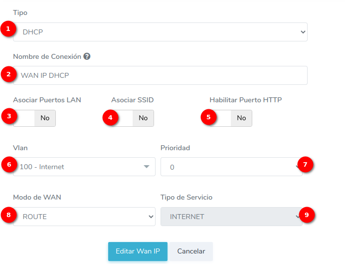 - ¿Cómo crear una configuración WAN IP de tipo DHCP?
