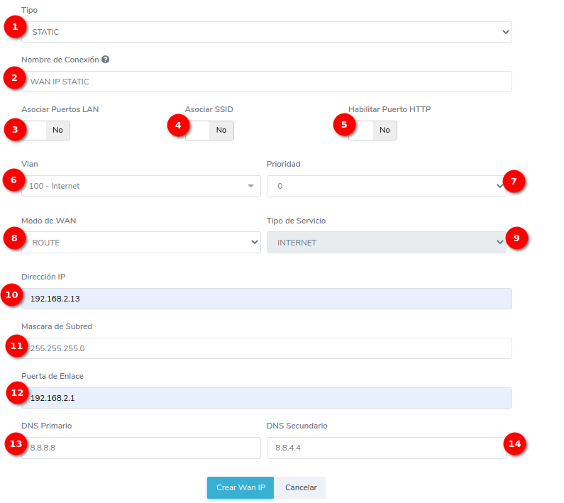 - ¿Cómo crear una configuración WAN IP de tipo STATIC?