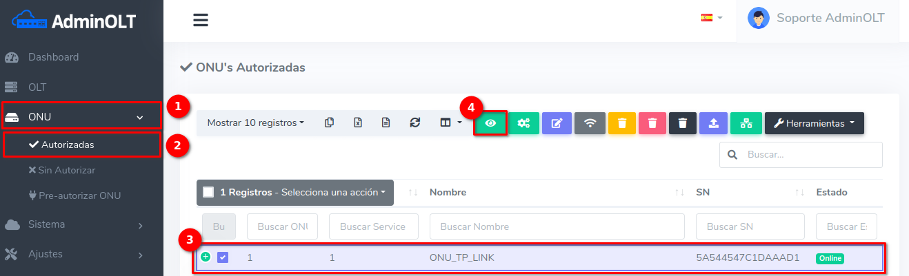 Al hacer esto, la configuración se borrará de la ONU y del sistema AdminOLT.