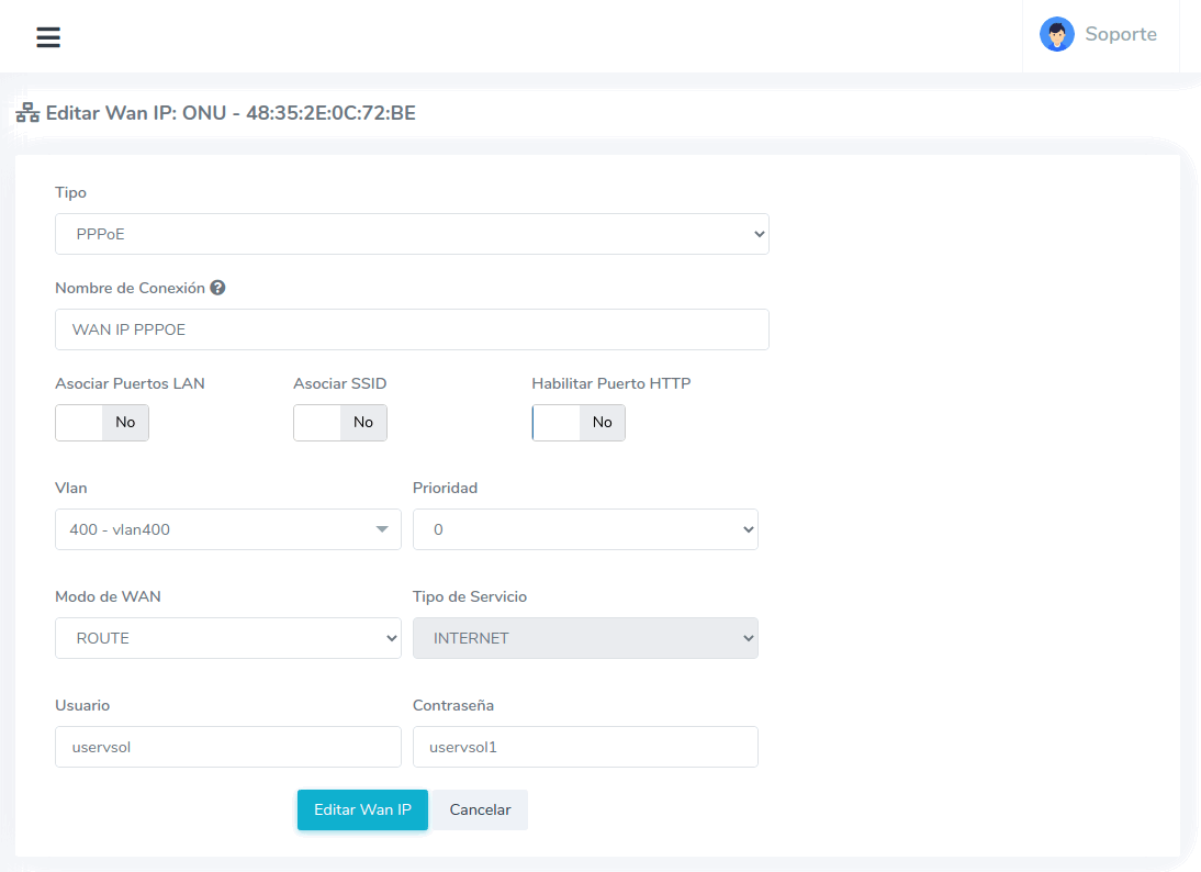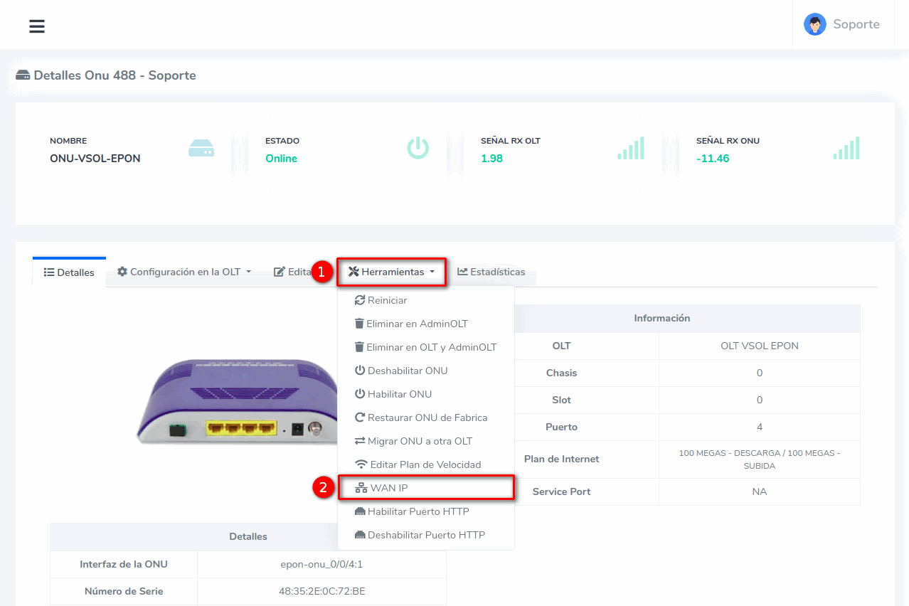 Configuración WAN IP VSOL EPON (AdminOLT)