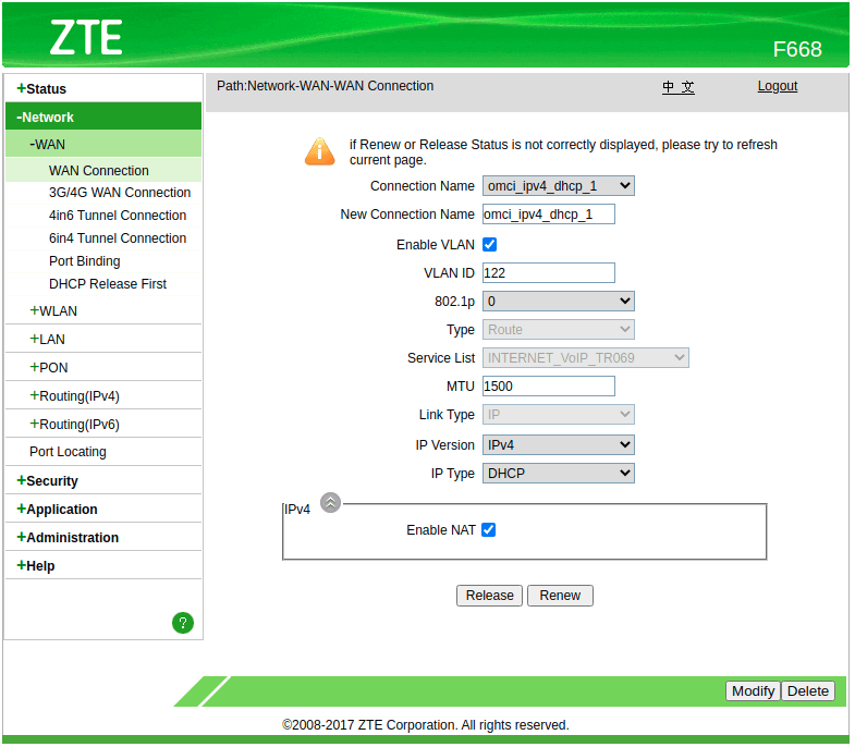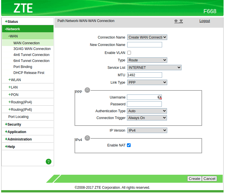 Configuración WAN IP ZTE (AdminOLT)