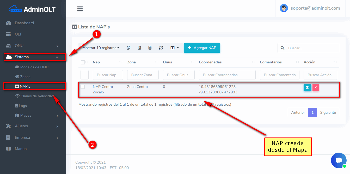 En los marcadores tipo NAP podra visualizarse la cantidad de ONU's que tiene asignadas esa Nap