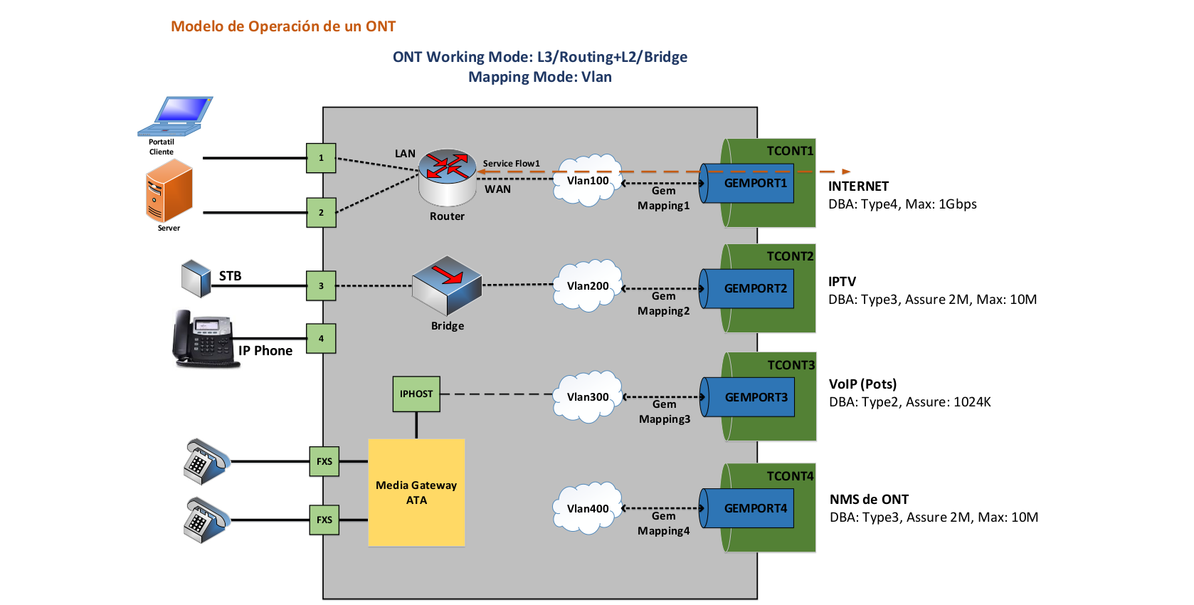 Con esta actualización podra crear configuraciones con modos de operación VLAN, para autorizar y manejar los servicios que desea proporcionar a sus clientes. La imagen que se muestra a continuación ilustra la configuración para servicios xPlay.