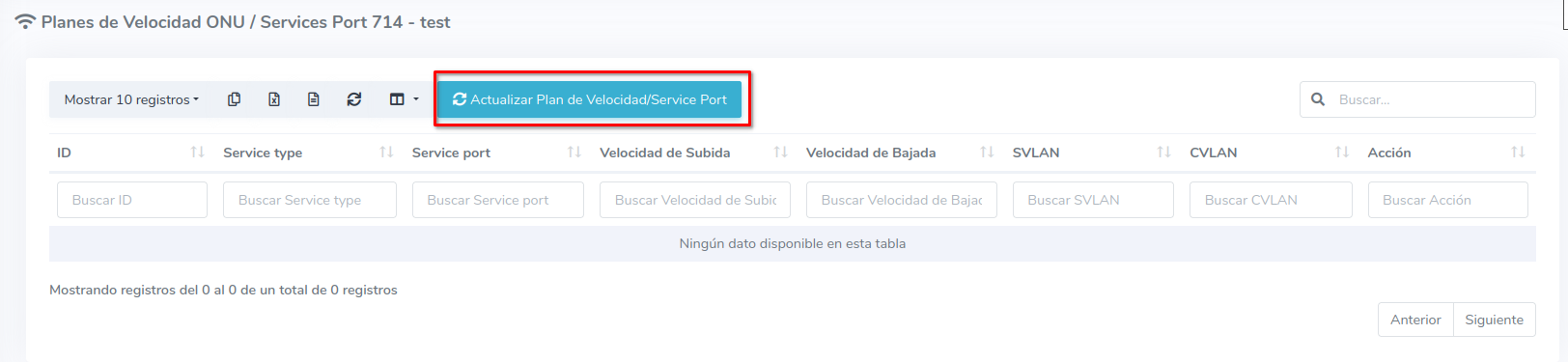 2 Dar clic en Actualizar Plan de velocidad/Service Port.
