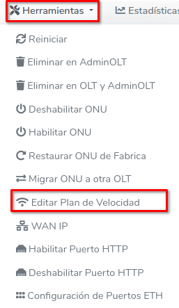 1Dirijase a la sección de ONU > Autorizadas > Editar Plan de Velocidad