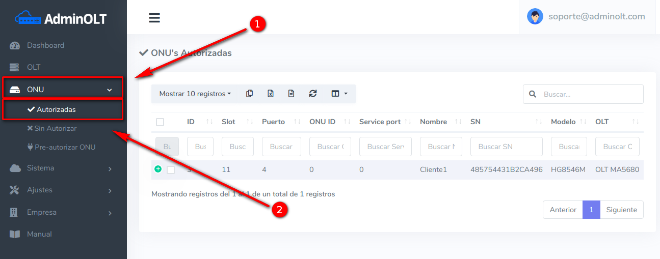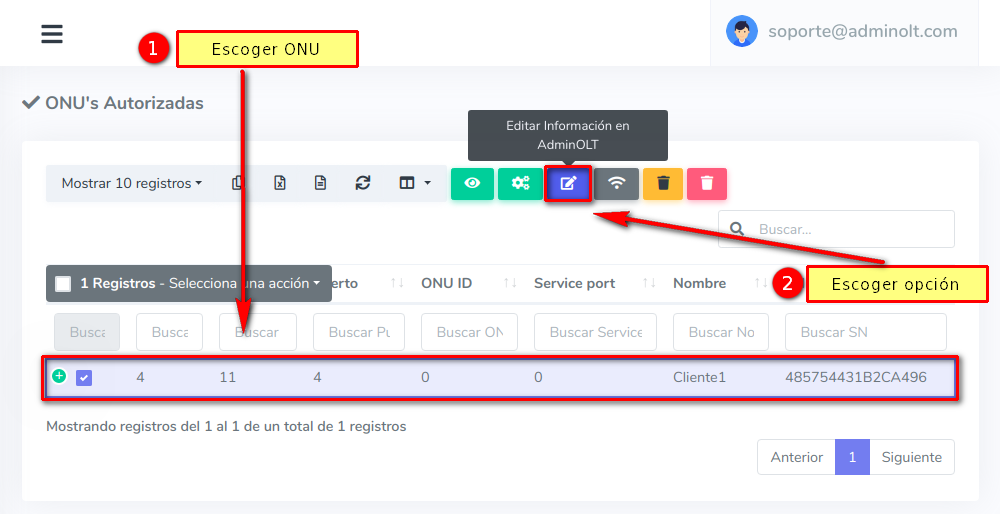 Pasos para editar información de ONU Autorizada en AdminOLT
