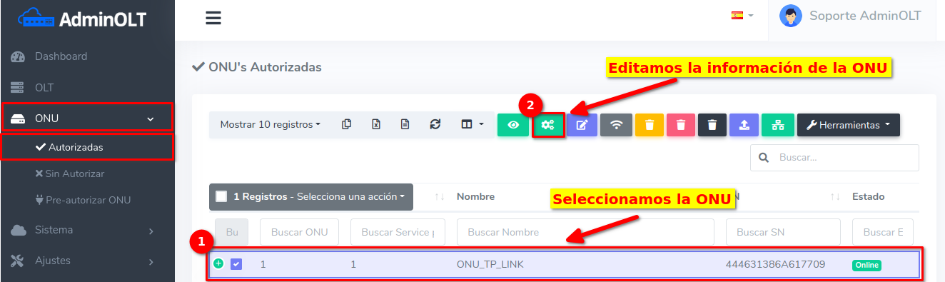 Pasos para editar información de ONU Autorizada por SN