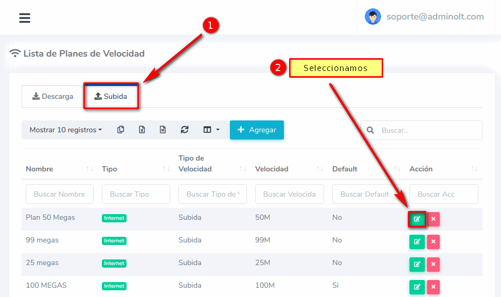 ¿Como edito un Plan de Velocidad de Subida?