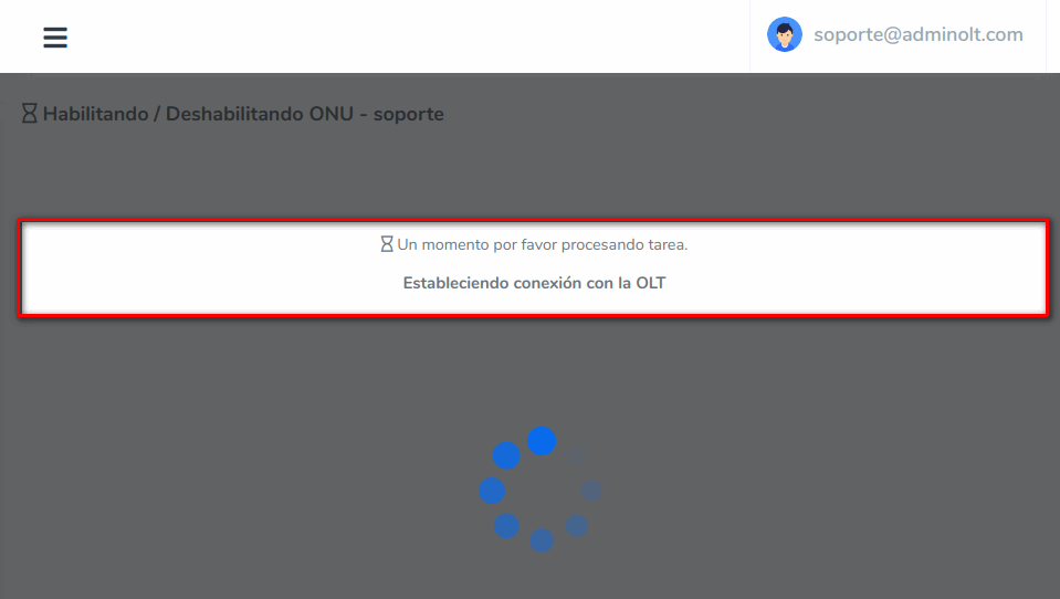 5 Una vez confirmada la acción se mandara a Habilitar la ONU, se nos mostraran mensajes que hacen referencia a los estados del proceso.