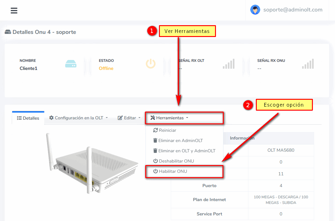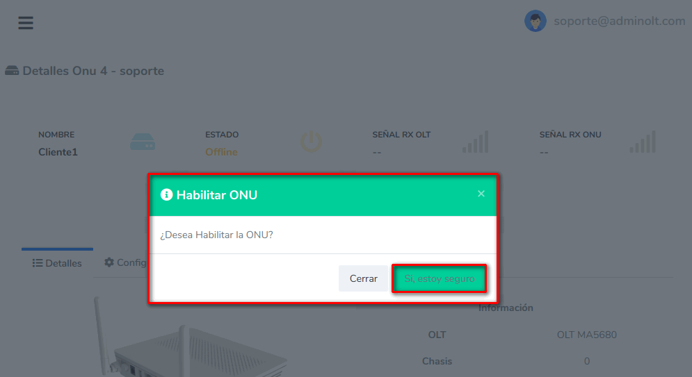 Habilitar/Deshabilitar ONU