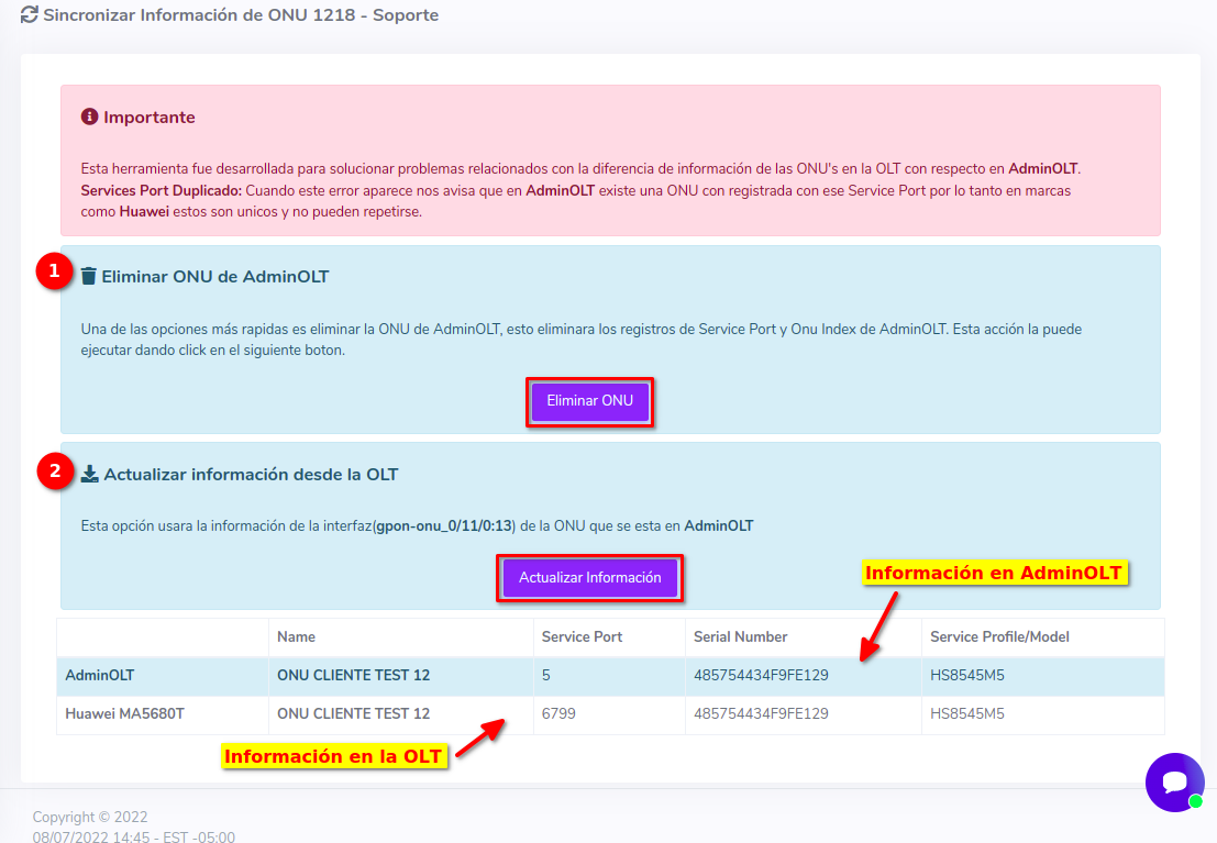 1.- Actualizar la información de la onu en AdminOLT