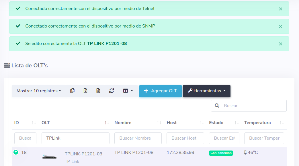 1 Para poder establecer la conexión de manera exitosa es necesario que generemos un script, para poder generarlo, nos dirigimos a nuestra OLT y seleccionamos la opción de editar.