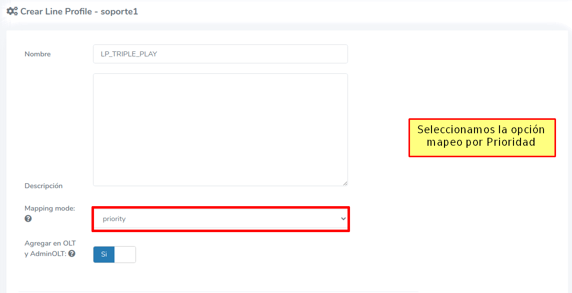 Para este caso vamos a seleccionar la opción de mapeo por Prioridad de nuestro Line Profile