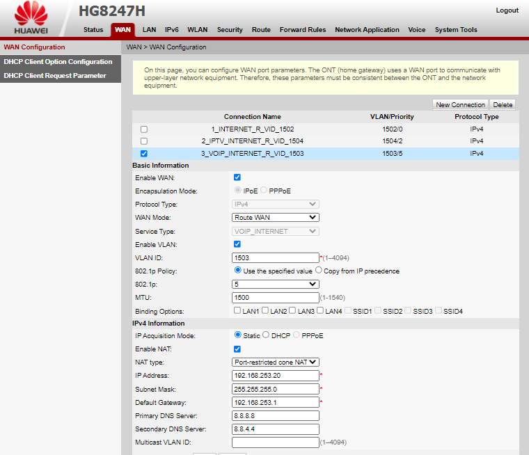 Para este paso lo que haremos es crear la WAN IP para el servicio de VOIP de igual forma tendremos que agregar la configuración del Voice